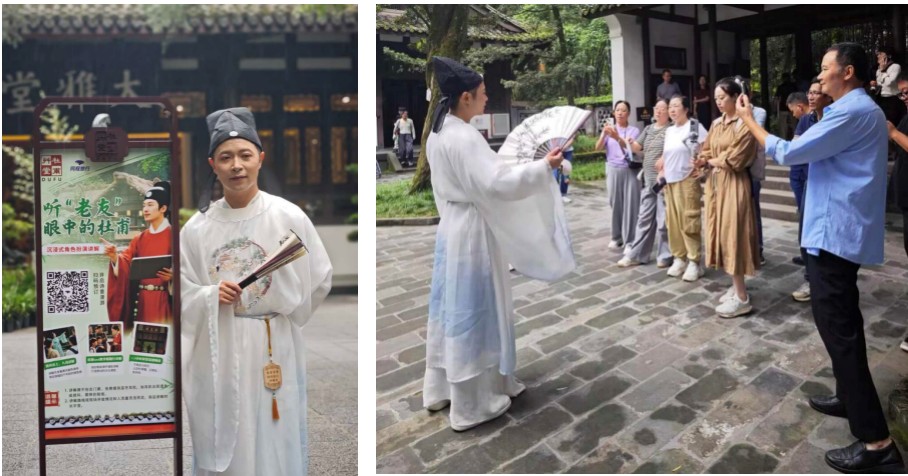 同程旅行NPC讲解员在杜甫草堂为观众提供讲解服务
