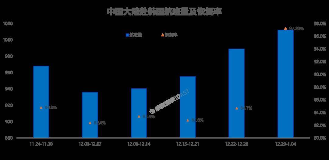 【大河财立方 记者 陈诗昂】航班管家DAST数据显示,中国内地赴韩国航线周航班量已连续4周增长。其中,2026年第1周(2025年12月29日至2026年1月4日),中国内地赴韩国航班量突破1000班次,达1012班次,居国际航线首位比较好的证券公司,恢复至2019年的97.2%。